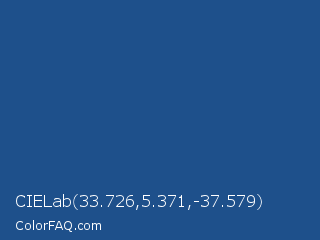 CIELab 33.726,5.371,-37.579 Color is a normal blue color and the nearest color is Yale Blue #0f4d92. Hex code #1e508b and RGB value is rgb(30,80,139). In RGB color space, this color is composed of 12% red, 31% green, 55% blue, In CMYK color space, this color is composed of 78% cyan, 42% magenta, 0% yellow , 45% black , In HSL color space, this color has a hue angle of 212° , 64% saturation and 33% lightness.