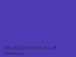 CIELab 33.9,40.941,-61.28 Color is a normal indigo color and the nearest color is Ocean Blue #4f42b5. Hex code #4d3bb3 and RGB value is rgb(77,59,179). In RGB color space, this color is composed of 30% red, 23% green, 70% blue, In CMYK color space, this color is composed of 57% cyan, 67% magenta, 0% yellow , 30% black , In HSL color space, this color has a hue angle of 249° , 50% saturation and 47% lightness.
