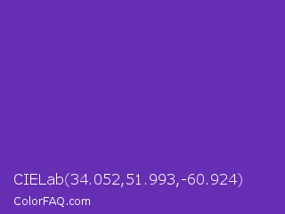 CIELab 34.052,51.993,-60.924 Color is a normal violet color and the nearest color is Purple Heart Crayola #652dc1. Hex code #662eb3 and RGB value is rgb(102,46,179). In RGB color space, this color is composed of 40% red, 18% green, 70% blue, In CMYK color space, this color is composed of 43% cyan, 74% magenta, 0% yellow , 30% black , In HSL color space, this color has a hue angle of 265° , 59% saturation and 44% lightness.