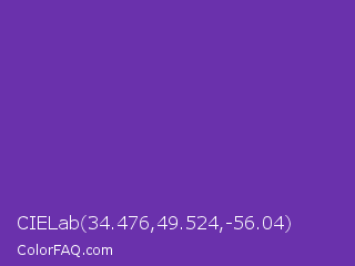 CIELab 34.476,49.524,-56.04 Color is a normal violet color and the nearest color is Grape #6f2da8. Hex code #6a31ac and RGB value is rgb(106,49,172). In RGB color space, this color is composed of 42% red, 19% green, 67% blue, In CMYK color space, this color is composed of 38% cyan, 72% magenta, 0% yellow , 33% black , In HSL color space, this color has a hue angle of 268° , 56% saturation and 43% lightness.