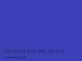 CIELab 34.4,36.386,-63.474 Color is a normal blue color and the nearest color is Violet Blue #324ab2. Hex code #3c41b8 and RGB value is rgb(60,65,184). In RGB color space, this color is composed of 24% red, 25% green, 72% blue, In CMYK color space, this color is composed of 67% cyan, 65% magenta, 0% yellow , 28% black , In HSL color space, this color has a hue angle of 238° , 51% saturation and 48% lightness.