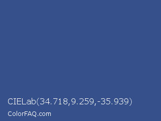 CIELab 34.718,9.259,-35.939 Color is a normal blue color and the nearest color is Chambray #354e8c. Hex code #35508b and RGB value is rgb(53,80,139). In RGB color space, this color is composed of 21% red, 31% green, 55% blue, In CMYK color space, this color is composed of 62% cyan, 42% magenta, 0% yellow , 45% black , In HSL color space, this color has a hue angle of 221° , 45% saturation and 38% lightness.