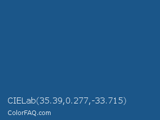 CIELab 35.39,0.277,-33.715 Color is a normal blue color and the nearest color is Blumine #18587a. Hex code #1b5689 and RGB value is rgb(27,86,137). In RGB color space, this color is composed of 11% red, 34% green, 54% blue, In CMYK color space, this color is composed of 80% cyan, 37% magenta, 0% yellow , 46% black , In HSL color space, this color has a hue angle of 208° , 67% saturation and 32% lightness.