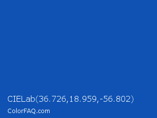 CIELab 36.726,18.959,-56.802 Color is a normal blue color and the nearest color is Sapphire #0f52ba. Hex code #0f52b3 and RGB value is rgb(15,82,179). In RGB color space, this color is composed of 6% red, 32% green, 70% blue, In CMYK color space, this color is composed of 92% cyan, 54% magenta, 0% yellow , 30% black , In HSL color space, this color has a hue angle of 215° , 85% saturation and 38% lightness.