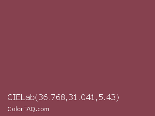 CIELab 36.768,31.041,5.43 Color is a normal red color and the nearest color is Cordovan #893f45. Hex code #86414f and RGB value is rgb(134,65,79). In RGB color space, this color is composed of 53% red, 25% green, 31% blue, In CMYK color space, this color is composed of 0% cyan, 51% magenta, 41% yellow , 47% black , In HSL color space, this color has a hue angle of 348° , 35% saturation and 39% lightness.