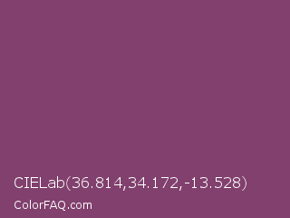 CIELab 36.814,34.172,-13.528 Color is a normal magenta color and the nearest color is Cannon Pink #894367. Hex code #81406d and RGB value is rgb(129,64,109). In RGB color space, this color is composed of 51% red, 25% green, 43% blue, In CMYK color space, this color is composed of 0% cyan, 50% magenta, 16% yellow , 49% black , In HSL color space, this color has a hue angle of 318° , 34% saturation and 38% lightness.