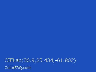 CIELab 36.9,25.434,-61.802 Color is a normal blue color and the nearest color is New Car #214fc6. Hex code #1d4fbc and RGB value is rgb(29,79,188). In RGB color space, this color is composed of 11% red, 31% green, 74% blue, In CMYK color space, this color is composed of 85% cyan, 58% magenta, 0% yellow , 26% black , In HSL color space, this color has a hue angle of 221° , 73% saturation and 43% lightness.