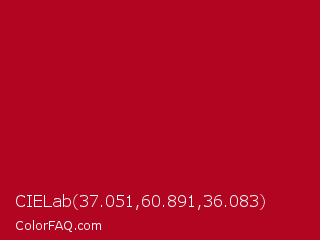CIELab 37.051,60.891,36.083 Color is a normal red color and the nearest color is Alabama Crimson #af002a. Hex code #b10521 and RGB value is rgb(177,5,33). In RGB color space, this color is composed of 69% red, 2% green, 13% blue, In CMYK color space, this color is composed of 0% cyan, 97% magenta, 81% yellow , 31% black , In HSL color space, this color has a hue angle of 350° , 95% saturation and 36% lightness.