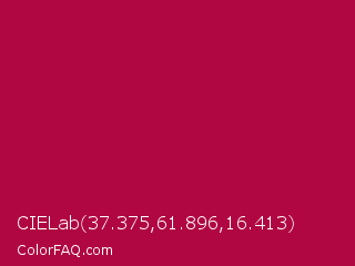 CIELab 37.375,61.896,16.413 Color is a normal rose color and the nearest color is Shiraz #b20931. Hex code #b00641 and RGB value is rgb(176,6,65). In RGB color space, this color is composed of 69% red, 2% green, 25% blue, In CMYK color space, this color is composed of 0% cyan, 97% magenta, 63% yellow , 31% black , In HSL color space, this color has a hue angle of 339° , 93% saturation and 36% lightness.