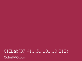 CIELab 37.411,51.101,10.212 Color is a normal rose color and the nearest color is Amaranth Purple #ab274f. Hex code #a2294a and RGB value is rgb(162,41,74). In RGB color space, this color is composed of 64% red, 16% green, 29% blue, In CMYK color space, this color is composed of 0% cyan, 75% magenta, 54% yellow , 36% black , In HSL color space, this color has a hue angle of 344° , 60% saturation and 40% lightness.