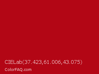 CIELab 37.423,61.006,43.075 Color is a normal red color and the nearest color is International Orange Engineering #ba160c. Hex code #b30615 and RGB value is rgb(179,6,21). In RGB color space, this color is composed of 70% red, 2% green, 8% blue, In CMYK color space, this color is composed of 0% cyan, 97% magenta, 88% yellow , 30% black , In HSL color space, this color has a hue angle of 355° , 94% saturation and 36% lightness.