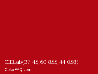 CIELab 37.45,60.855,44.058 Color is a normal red color and the nearest color is International Orange Engineering #ba160c. Hex code #b30713 and RGB value is rgb(179,7,19). In RGB color space, this color is composed of 70% red, 3% green, 7% blue, In CMYK color space, this color is composed of 0% cyan, 96% magenta, 89% yellow , 30% black , In HSL color space, this color has a hue angle of 356° , 92% saturation and 36% lightness.