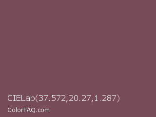 CIELab 37.572,20.27,1.287 Color is a normal red color and the nearest color is Ferra #704f50. Hex code #784c57 and RGB value is rgb(120,76,87). In RGB color space, this color is composed of 47% red, 30% green, 34% blue, In CMYK color space, this color is composed of 0% cyan, 37% magenta, 28% yellow , 53% black , In HSL color space, this color has a hue angle of 345° , 22% saturation and 38% lightness.