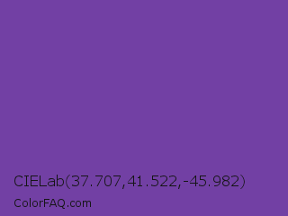 CIELab 37.707,41.522,-45.982 Color is a normal violet color and the nearest color is Royal Purple #6b3fa0. Hex code #7240a4 and RGB value is rgb(114,64,164). In RGB color space, this color is composed of 45% red, 25% green, 64% blue, In CMYK color space, this color is composed of 30% cyan, 61% magenta, 0% yellow , 36% black , In HSL color space, this color has a hue angle of 270° , 44% saturation and 45% lightness.