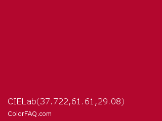 CIELab 37.722,61.61,29.08 Color is a normal red color and the nearest color is Shiraz #b20931. Hex code #b3072e and RGB value is rgb(179,7,46). In RGB color space, this color is composed of 70% red, 3% green, 18% blue, In CMYK color space, this color is composed of 0% cyan, 96% magenta, 74% yellow , 30% black , In HSL color space, this color has a hue angle of 346° , 92% saturation and 36% lightness.