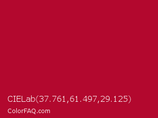 CIELab 37.761,61.497,29.125 Color is a normal red color and the nearest color is Shiraz #b20931. Hex code #b3082e and RGB value is rgb(179,8,46). In RGB color space, this color is composed of 70% red, 3% green, 18% blue, In CMYK color space, this color is composed of 0% cyan, 96% magenta, 74% yellow , 30% black , In HSL color space, this color has a hue angle of 347° , 91% saturation and 37% lightness.