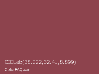 CIELab 38.222,32.41,8.899 Color is a normal red color and the nearest color is Cordovan #893f45. Hex code #8d434d and RGB value is rgb(141,67,77). In RGB color space, this color is composed of 55% red, 26% green, 30% blue, In CMYK color space, this color is composed of 0% cyan, 52% magenta, 45% yellow , 45% black , In HSL color space, this color has a hue angle of 352° , 36% saturation and 41% lightness.