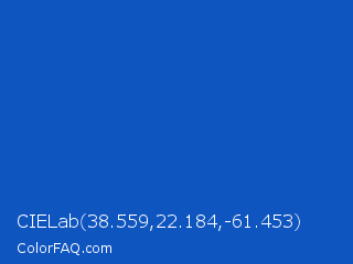 CIELab 38.559,22.184,-61.453 Color is a normal blue color and the nearest color is Sapphire #0f52ba. Hex code #0f55c0 and RGB value is rgb(15,85,192). In RGB color space, this color is composed of 6% red, 33% green, 75% blue, In CMYK color space, this color is composed of 92% cyan, 56% magenta, 0% yellow , 25% black , In HSL color space, this color has a hue angle of 216° , 86% saturation and 41% lightness.