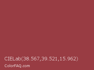 CIELab 38.567,39.521,15.962 Color is a normal red color and the nearest color is Smoky Topaz #933d41. Hex code #993c43 and RGB value is rgb(153,60,67). In RGB color space, this color is composed of 60% red, 24% green, 26% blue, In CMYK color space, this color is composed of 0% cyan, 61% magenta, 56% yellow , 40% black , In HSL color space, this color has a hue angle of 355° , 44% saturation and 42% lightness.