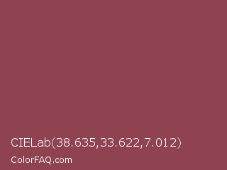 CIELab 38.635,33.622,7.012 Color is a normal red color and the nearest color is Copper Rust #944747. Hex code #8f4351 and RGB value is rgb(143,67,81). In RGB color space, this color is composed of 56% red, 26% green, 32% blue, In CMYK color space, this color is composed of 0% cyan, 53% magenta, 43% yellow , 44% black , In HSL color space, this color has a hue angle of 349° , 36% saturation and 41% lightness.