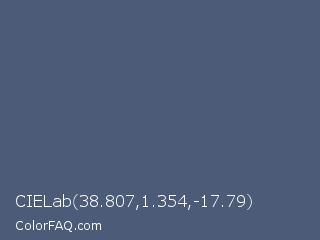 CIELab 38.807,1.354,-17.79 Color is a normal blue color and the nearest color is Blue Bayoux #496679. Hex code #4c5c78 and RGB value is rgb(76,92,120). In RGB color space, this color is composed of 30% red, 36% green, 47% blue, In CMYK color space, this color is composed of 37% cyan, 23% magenta, 0% yellow , 53% black , In HSL color space, this color has a hue angle of 218° , 22% saturation and 38% lightness.