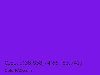 CIELab 38.858,74.66,-83.741 Color is a normal violet color and the nearest color is Blue Violet #8a2be2. Hex code #7a17e8 and RGB value is rgb(122,23,232). In RGB color space, this color is composed of 48% red, 9% green, 91% blue, In CMYK color space, this color is composed of 47% cyan, 90% magenta, 0% yellow , 9% black , In HSL color space, this color has a hue angle of 268° , 82% saturation and 50% lightness.