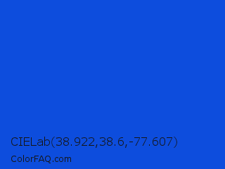 CIELab 38.922,38.6,-77.607 Color is a normal blue color and the nearest color is New Car #214fc6. Hex code #0d4ddd and RGB value is rgb(13,77,221). In RGB color space, this color is composed of 5% red, 30% green, 87% blue, In CMYK color space, this color is composed of 94% cyan, 65% magenta, 0% yellow , 13% black , In HSL color space, this color has a hue angle of 222° , 89% saturation and 46% lightness.