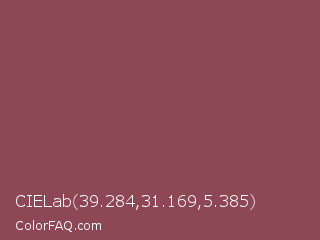 CIELab 39.284,31.169,5.385 Color is a normal red color and the nearest color is Deep Ruby #843f5b. Hex code #8d4755 and RGB value is rgb(141,71,85). In RGB color space, this color is composed of 55% red, 28% green, 33% blue, In CMYK color space, this color is composed of 0% cyan, 50% magenta, 40% yellow , 45% black , In HSL color space, this color has a hue angle of 348° , 33% saturation and 42% lightness.
