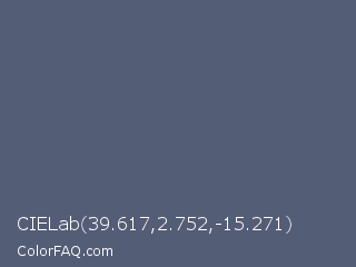 CIELab 39.617,2.752,-15.271 Color is a normal blue color and the nearest color is Comet #5c5d75. Hex code #545d76 and RGB value is rgb(84,93,118). In RGB color space, this color is composed of 33% red, 36% green, 46% blue, In CMYK color space, this color is composed of 29% cyan, 21% magenta, 0% yellow , 54% black , In HSL color space, this color has a hue angle of 224° , 17% saturation and 40% lightness.