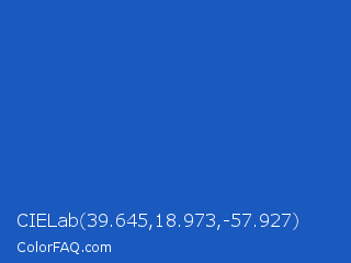 CIELab 39.645,18.973,-57.927 Color is a normal blue color and the nearest color is Denim #1560bd. Hex code #1a59bd and RGB value is rgb(26,89,189). In RGB color space, this color is composed of 10% red, 35% green, 74% blue, In CMYK color space, this color is composed of 86% cyan, 53% magenta, 0% yellow , 26% black , In HSL color space, this color has a hue angle of 217° , 76% saturation and 42% lightness.