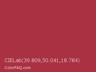 CIELab 39.809,50.041,18.784 Color is a normal red color and the nearest color is Amaranth Purple #ab274f. Hex code #aa3142 and RGB value is rgb(170,49,66). In RGB color space, this color is composed of 67% red, 19% green, 26% blue, In CMYK color space, this color is composed of 0% cyan, 71% magenta, 61% yellow , 33% black , In HSL color space, this color has a hue angle of 352° , 55% saturation and 43% lightness.