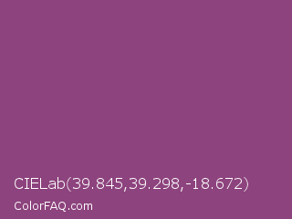 CIELab 39.845,39.298,-18.672 Color is a normal magenta color and the nearest color is Plum #8e4585. Hex code #8d437d and RGB value is rgb(141,67,125). In RGB color space, this color is composed of 55% red, 26% green, 49% blue, In CMYK color space, this color is composed of 0% cyan, 52% magenta, 11% yellow , 45% black , In HSL color space, this color has a hue angle of 313° , 36% saturation and 41% lightness.