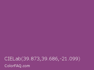 CIELab 39.873,39.686,-21.099 Color is a normal magenta color and the nearest color is Plum #8e4585. Hex code #8c4381 and RGB value is rgb(140,67,129). In RGB color space, this color is composed of 55% red, 26% green, 51% blue, In CMYK color space, this color is composed of 0% cyan, 52% magenta, 8% yellow , 45% black , In HSL color space, this color has a hue angle of 309° , 35% saturation and 41% lightness.
