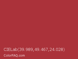 CIELab 39.989,49.467,24.028 Color is a normal red color and the nearest color is Sweet Brown #a83731. Hex code #ab323a and RGB value is rgb(171,50,58). In RGB color space, this color is composed of 67% red, 20% green, 23% blue, In CMYK color space, this color is composed of 0% cyan, 71% magenta, 66% yellow , 33% black , In HSL color space, this color has a hue angle of 356° , 55% saturation and 43% lightness.