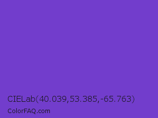 CIELab 40.039,53.385,-65.763 Color is a normal violet color and the nearest color is Purple Heart Crayola #652dc1. Hex code #723dcc and RGB value is rgb(114,61,204). In RGB color space, this color is composed of 45% red, 24% green, 80% blue, In CMYK color space, this color is composed of 44% cyan, 70% magenta, 0% yellow , 20% black , In HSL color space, this color has a hue angle of 262° , 58% saturation and 52% lightness.