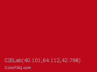 CIELab 40.101,64.112,42.798 Color is a normal red color and the nearest color is Monza #c7031e. Hex code #bf071c and RGB value is rgb(191,7,28). In RGB color space, this color is composed of 75% red, 3% green, 11% blue, In CMYK color space, this color is composed of 0% cyan, 96% magenta, 85% yellow , 25% black , In HSL color space, this color has a hue angle of 353° , 93% saturation and 39% lightness.