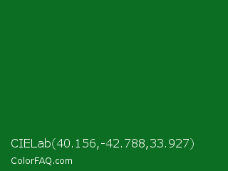 CIELab 40.156,-42.788,33.927 Color is a dark green color and the nearest color is La Salle Green #087830. Hex code #0c6e22 and RGB value is rgb(12,110,34). In RGB color space, this color is composed of 5% red, 43% green, 13% blue, In CMYK color space, this color is composed of 89% cyan, 0% magenta, 69% yellow , 57% black , In HSL color space, this color has a hue angle of 133° , 80% saturation and 24% lightness.
