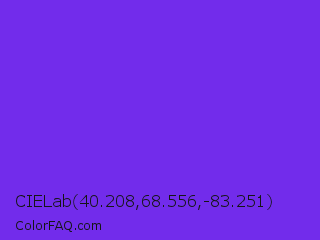 CIELab 40.208,68.556,-83.251 Color is a normal violet color and the nearest color is Blue Violet #8a2be2. Hex code #722ceb and RGB value is rgb(114,44,235). In RGB color space, this color is composed of 45% red, 17% green, 92% blue, In CMYK color space, this color is composed of 51% cyan, 81% magenta, 0% yellow , 8% black , In HSL color space, this color has a hue angle of 262° , 83% saturation and 55% lightness.