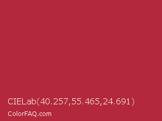 CIELab 40.257,55.465,24.691 Color is a normal red color and the nearest color is Deep Carmine #a9203e. Hex code #b3283a and RGB value is rgb(179,40,58). In RGB color space, this color is composed of 70% red, 16% green, 23% blue, In CMYK color space, this color is composed of 0% cyan, 78% magenta, 68% yellow , 30% black , In HSL color space, this color has a hue angle of 352° , 63% saturation and 43% lightness.
