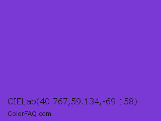 CIELab 40.767,59.134,-69.158 Color is a normal violet color and the nearest color is Blue Violet #8a2be2. Hex code #7a38d4 and RGB value is rgb(122,56,212). In RGB color space, this color is composed of 48% red, 22% green, 83% blue, In CMYK color space, this color is composed of 42% cyan, 74% magenta, 0% yellow , 17% black , In HSL color space, this color has a hue angle of 265° , 64% saturation and 53% lightness.