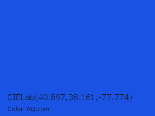 CIELab 40.897,38.161,-77.774 Color is a normal blue color and the nearest color is Palatinate Blue #273be2. Hex code #1a52e3 and RGB value is rgb(26,82,227). In RGB color space, this color is composed of 10% red, 32% green, 89% blue, In CMYK color space, this color is composed of 89% cyan, 64% magenta, 0% yellow , 11% black , In HSL color space, this color has a hue angle of 223° , 79% saturation and 50% lightness.