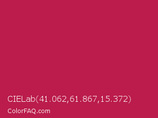 CIELab 41.062,61.867,15.372 Color is a normal rose color and the nearest color is Maroon Flush #c32148. Hex code #bb1c4b and RGB value is rgb(187,28,75). In RGB color space, this color is composed of 73% red, 11% green, 29% blue, In CMYK color space, this color is composed of 0% cyan, 85% magenta, 60% yellow , 27% black , In HSL color space, this color has a hue angle of 342° , 74% saturation and 42% lightness.