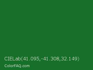 CIELab 41.095,-41.308,32.149 Color is a dark green color and the nearest color is La Salle Green #087830. Hex code #177028 and RGB value is rgb(23,112,40). In RGB color space, this color is composed of 9% red, 44% green, 16% blue, In CMYK color space, this color is composed of 79% cyan, 0% magenta, 64% yellow , 56% black , In HSL color space, this color has a hue angle of 131° , 66% saturation and 26% lightness.