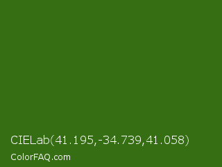 CIELab 41.195,-34.739,41.058 Color is a dark green color and the nearest color is Dell #396413. Hex code #366e14 and RGB value is rgb(54,110,20). In RGB color space, this color is composed of 21% red, 43% green, 8% blue, In CMYK color space, this color is composed of 51% cyan, 0% magenta, 82% yellow , 57% black , In HSL color space, this color has a hue angle of 97° , 69% saturation and 25% lightness.