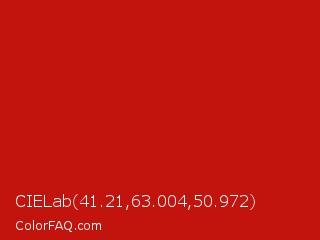 CIELab 41.21,63.004,50.972 Color is a normal red color and the nearest color is International Orange Engineering #ba160c. Hex code #c2140c and RGB value is rgb(194,20,12). In RGB color space, this color is composed of 76% red, 8% green, 5% blue, In CMYK color space, this color is composed of 0% cyan, 90% magenta, 94% yellow , 24% black , In HSL color space, this color has a hue angle of 3° , 88% saturation and 40% lightness.