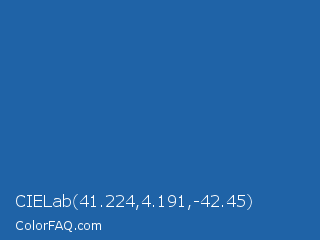CIELab 41.224,4.191,-42.45 Color is a normal blue color and the nearest color is Matisse #1b659d. Hex code #1f63a7 and RGB value is rgb(31,99,167). In RGB color space, this color is composed of 12% red, 39% green, 65% blue, In CMYK color space, this color is composed of 81% cyan, 41% magenta, 0% yellow , 35% black , In HSL color space, this color has a hue angle of 210° , 69% saturation and 39% lightness.