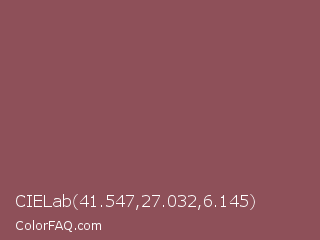 CIELab 41.547,27.032,6.145 Color is a normal red color and the nearest color is Rose Taupe #905d5d. Hex code #8e5059 and RGB value is rgb(142,80,89). In RGB color space, this color is composed of 56% red, 31% green, 35% blue, In CMYK color space, this color is composed of 0% cyan, 44% magenta, 37% yellow , 44% black , In HSL color space, this color has a hue angle of 351° , 28% saturation and 44% lightness.