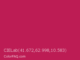 CIELab 41.672,62.998,10.583 Color is a normal rose color and the nearest color is Rose Red #c21e56. Hex code #bd1c54 and RGB value is rgb(189,28,84). In RGB color space, this color is composed of 74% red, 11% green, 33% blue, In CMYK color space, this color is composed of 0% cyan, 85% magenta, 56% yellow , 26% black , In HSL color space, this color has a hue angle of 339° , 74% saturation and 43% lightness.