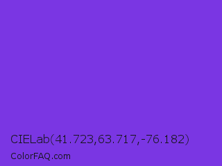 CIELab 41.723,63.717,-76.182 Color is a normal violet color and the nearest color is Blue Violet #8a2be2. Hex code #7a36e3 and RGB value is rgb(122,54,227). In RGB color space, this color is composed of 48% red, 21% green, 89% blue, In CMYK color space, this color is composed of 46% cyan, 76% magenta, 0% yellow , 11% black , In HSL color space, this color has a hue angle of 264° , 76% saturation and 55% lightness.