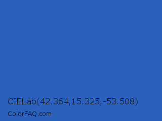 CIELab 42.364,15.325,-53.508 Color is a normal blue color and the nearest color is Cerulean Blue #2a52be. Hex code #2b61bd and RGB value is rgb(43,97,189). In RGB color space, this color is composed of 17% red, 38% green, 74% blue, In CMYK color space, this color is composed of 77% cyan, 49% magenta, 0% yellow , 26% black , In HSL color space, this color has a hue angle of 218° , 63% saturation and 45% lightness.